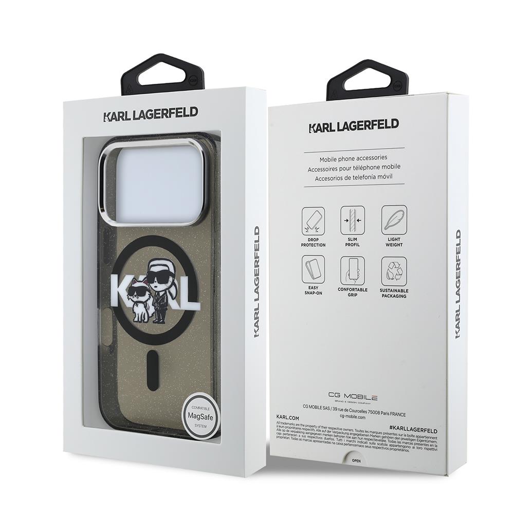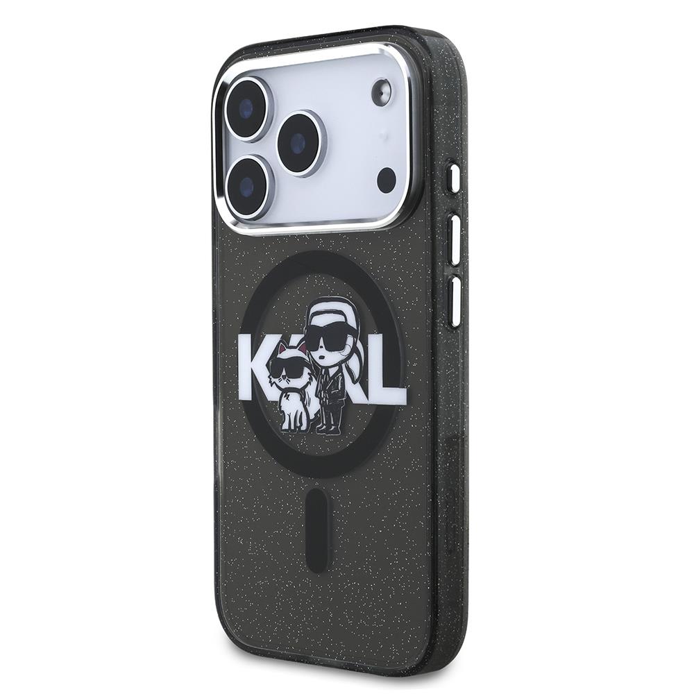 iPhone 17 Pro Max Kılıf Karl Lagerfeld Orjinal Lisanslı Parlayan Simli Karl & Choupette Sketch Logo Kapak