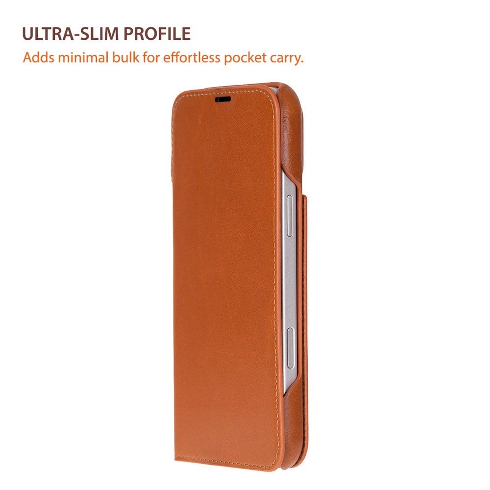 Apple iPhone 17 Pro Max için, Hakiki Deri, El Yapımı, Cüzdanlı Slim Kılıf, Mag safe ile uyumlu, İç Yüzeyi Kadife, Gölgeli Taba