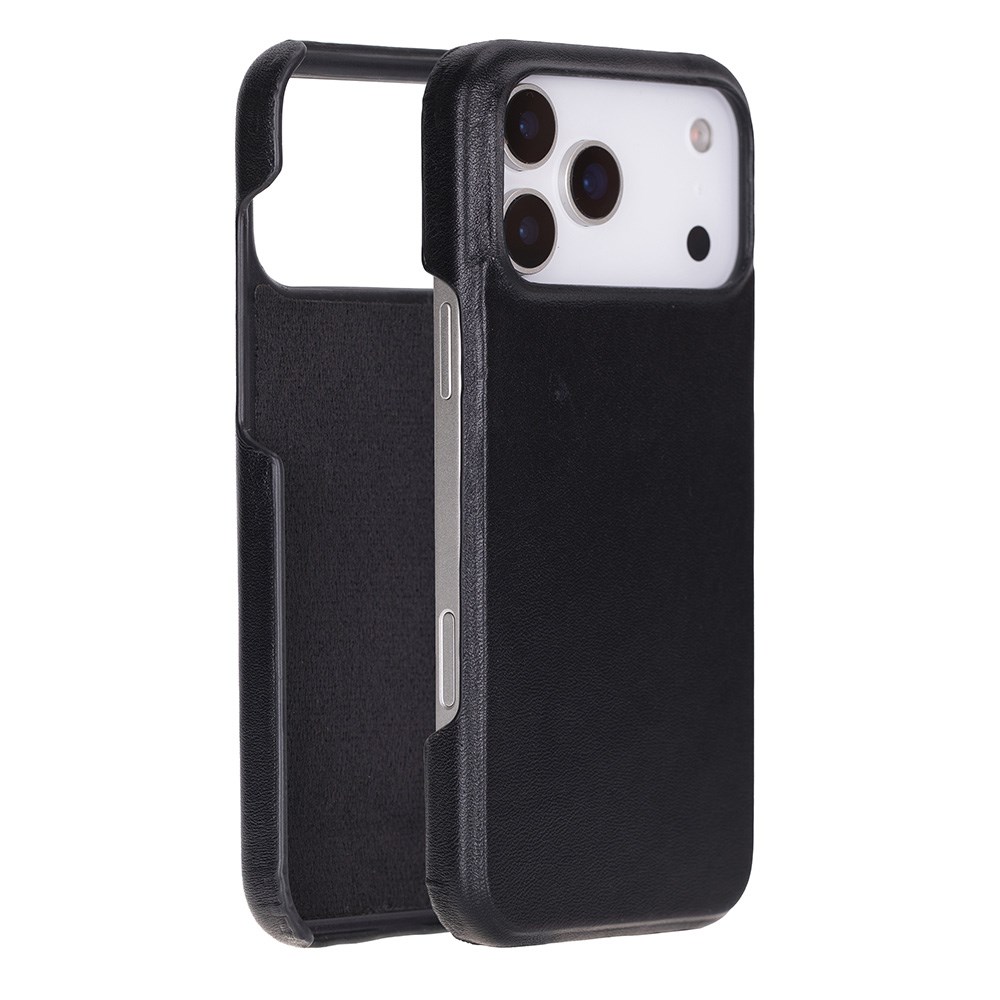 Apple iPhone 17 Pro Max için, Hakiki Deri, El Yapımı Kılıf, Magsafe ile uyumlu, İç Yüzeyi Kadife, Kömür Siyah