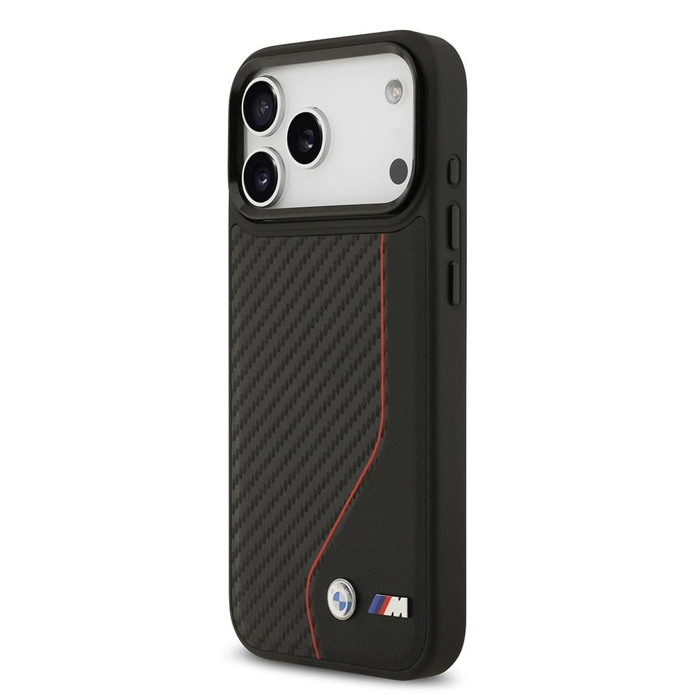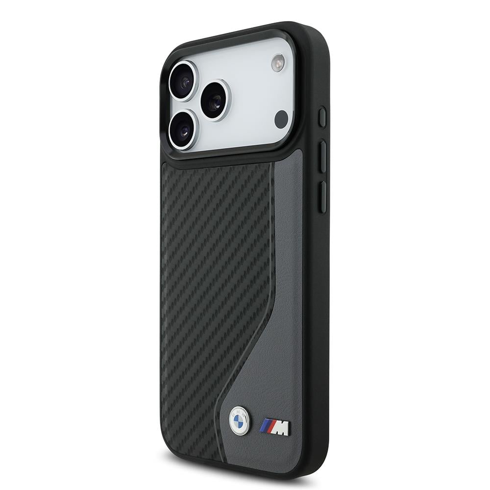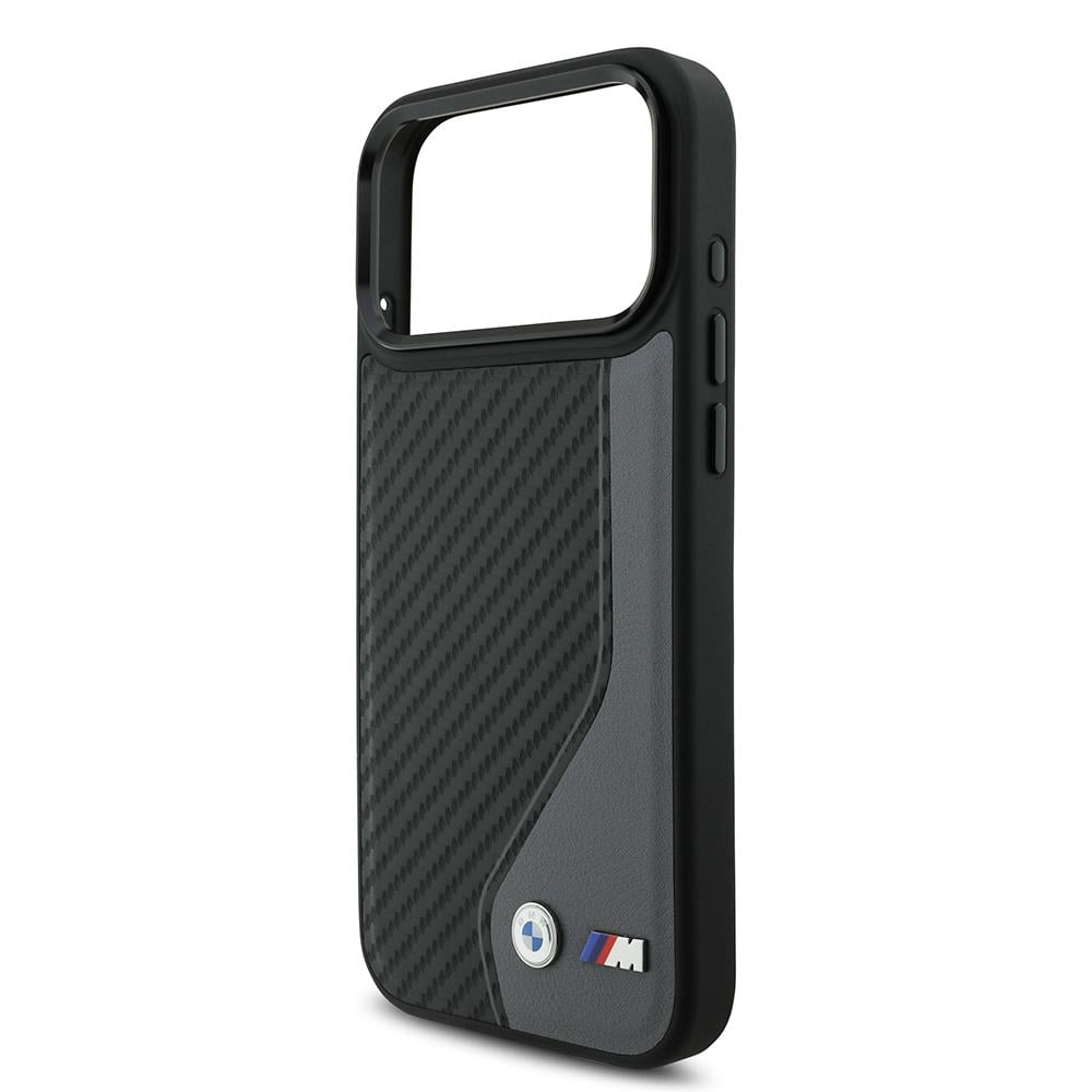 Apple iPhone 17 Pro Max Kılıf BMW Orjinal Lisanslı M-safe Şarj Özellikli Metal BMW ve M Logolu PU Karbon Tasarımlı Kapak