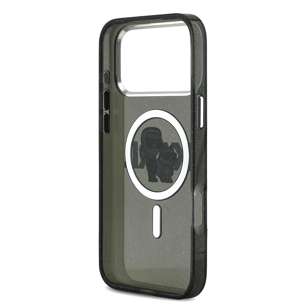 Apple iPhone 17 Pro Max Kılıf Karl Lagerfeld Orjinal Lisanslı Parlayan Simli Karl & Choupette Sketch Logo Kapak