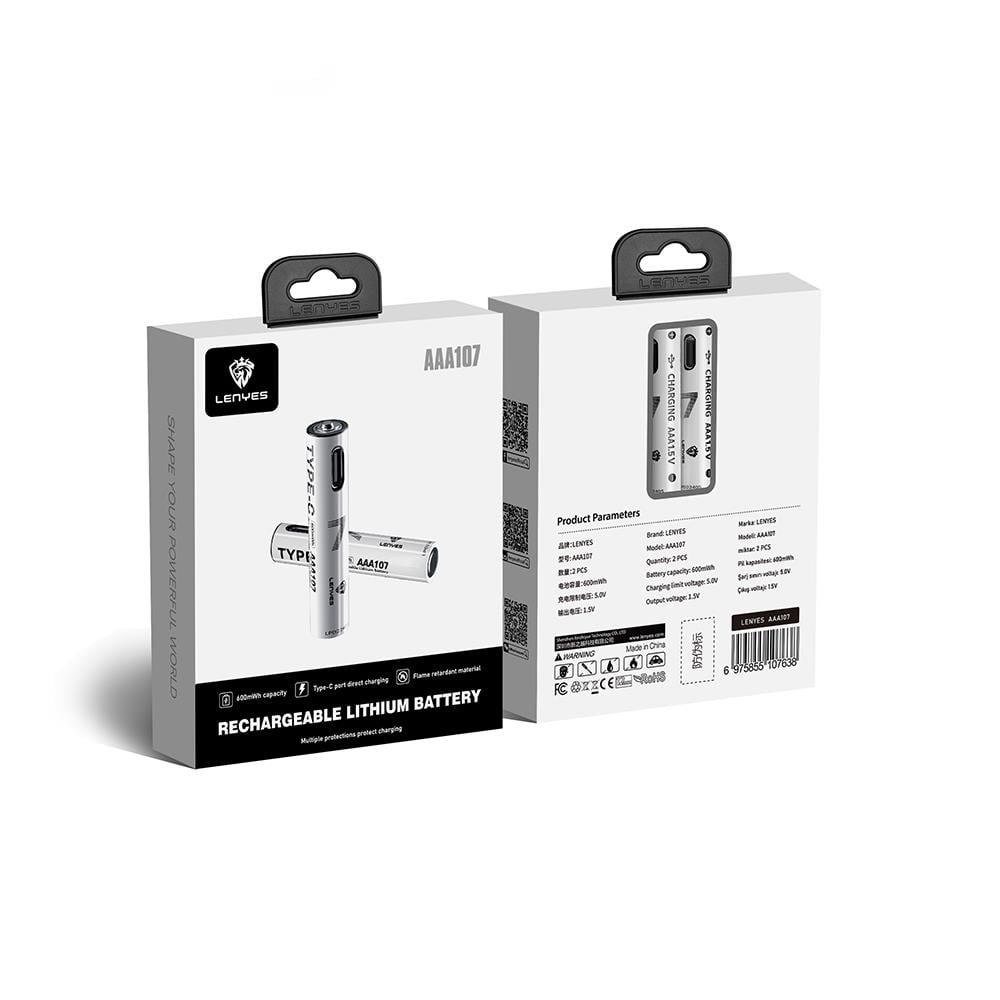 Lenyes AAA107 Type-C Şarj Portlu Şarj Edilebilir AAA Lityum-ion Pil 600mWh 1.5V 2 Adet