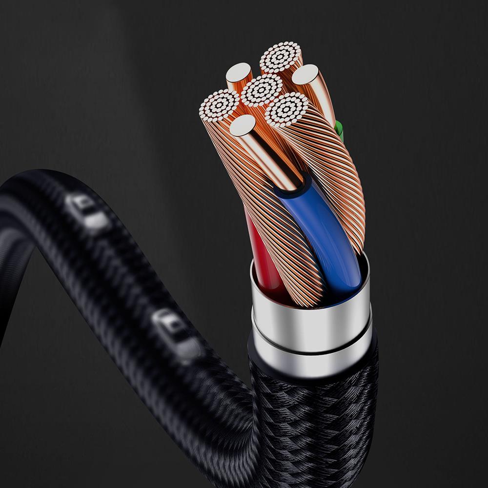 5 mm kalınlığında naylon örgüyle güçlendirilmiş kablo, bükülme ve çekmelere karşı dayanıklılık sağlar. Yüksek kaliteli bakır teller, sabit enerji akışını destekler ve kesintisiz veri aktarımı sunar. Lenyes LC532, uzun ömürlü kullanım için tasarlanmıştır.