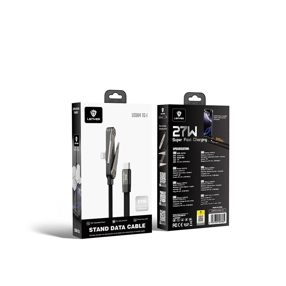 Lenyes LC554 Type-C to Lightning Stand Özellikli Data ve Şarj Kablosu 27W 1M