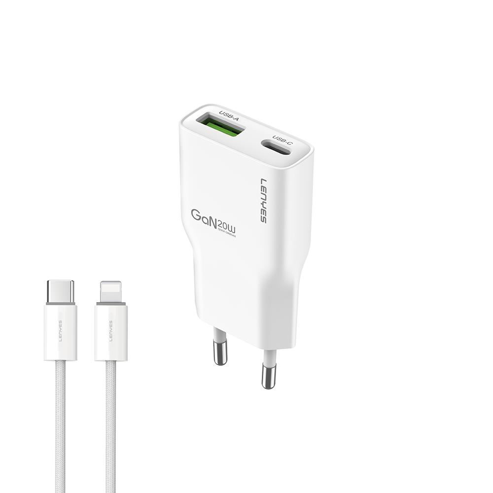 Lenyes LCH11 Serisi Type-C to Lightning GaN Teknolojili PD Hızlı Şarj Özellikli Kablolu Şarj Seti 20W