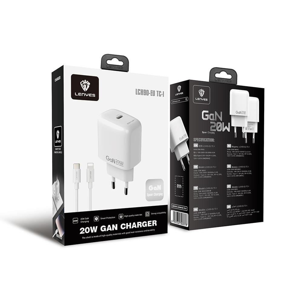Lenyes LCH90-TC-L Type-C to Lightning GaN Teknolojili PD Hızlı Şarj Özellikli Şarj Seti 20W