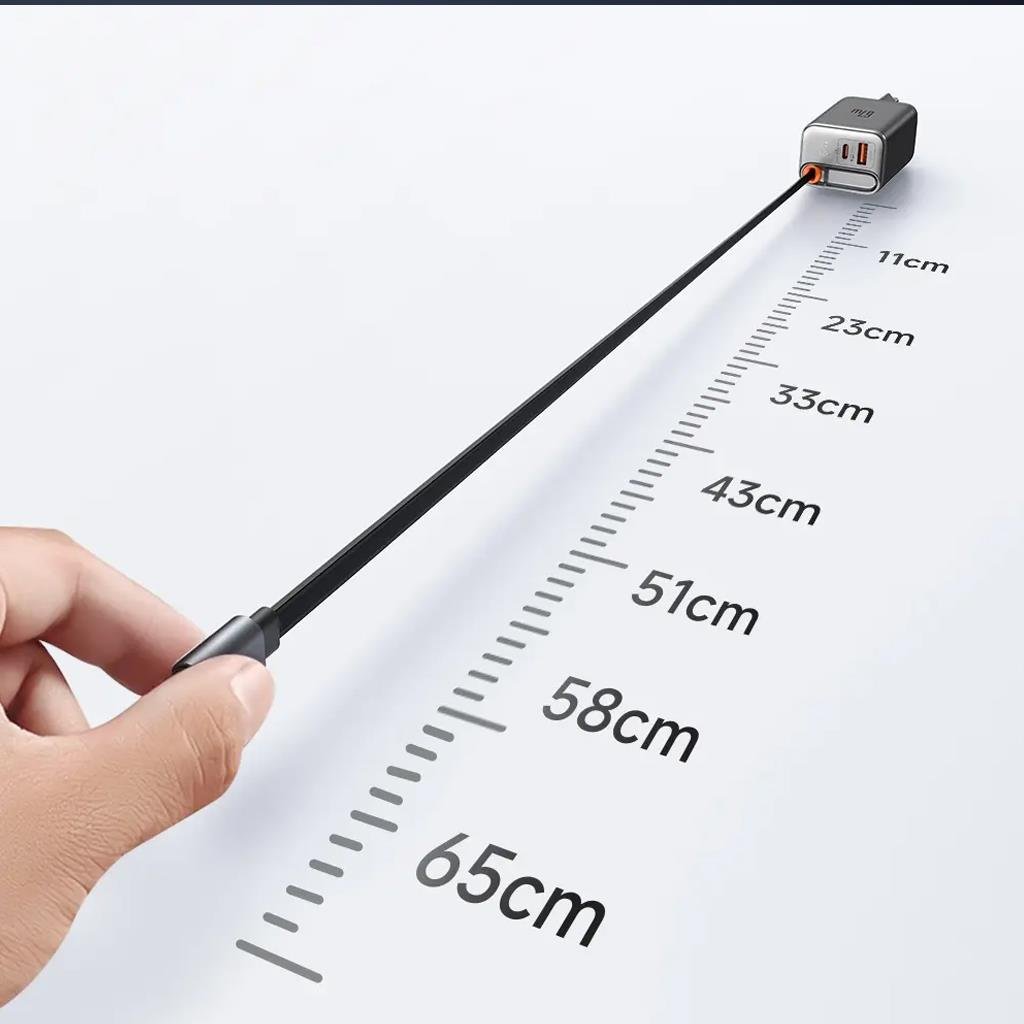 Dahili geri çekilebilir (retractable) USB-C kablo (≈65 cm): Masada ya da çantada kablo karmaşasına veda!