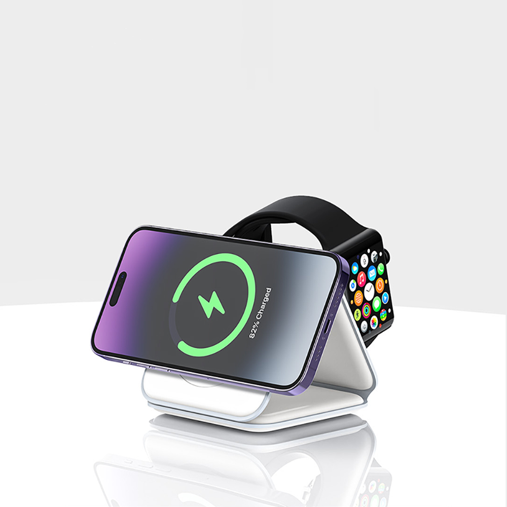 15W maksimum güç çıkışı ile telefonunuzu hızla şarj eden bu stand, AirPods için 5W ve Apple Watch için 2.5W şarj kapasitesine sahiptir. Type-C girişi ve şarj durum ışığı ile hem güçlü hem de akıllı bir şarj deneyimi sunar.