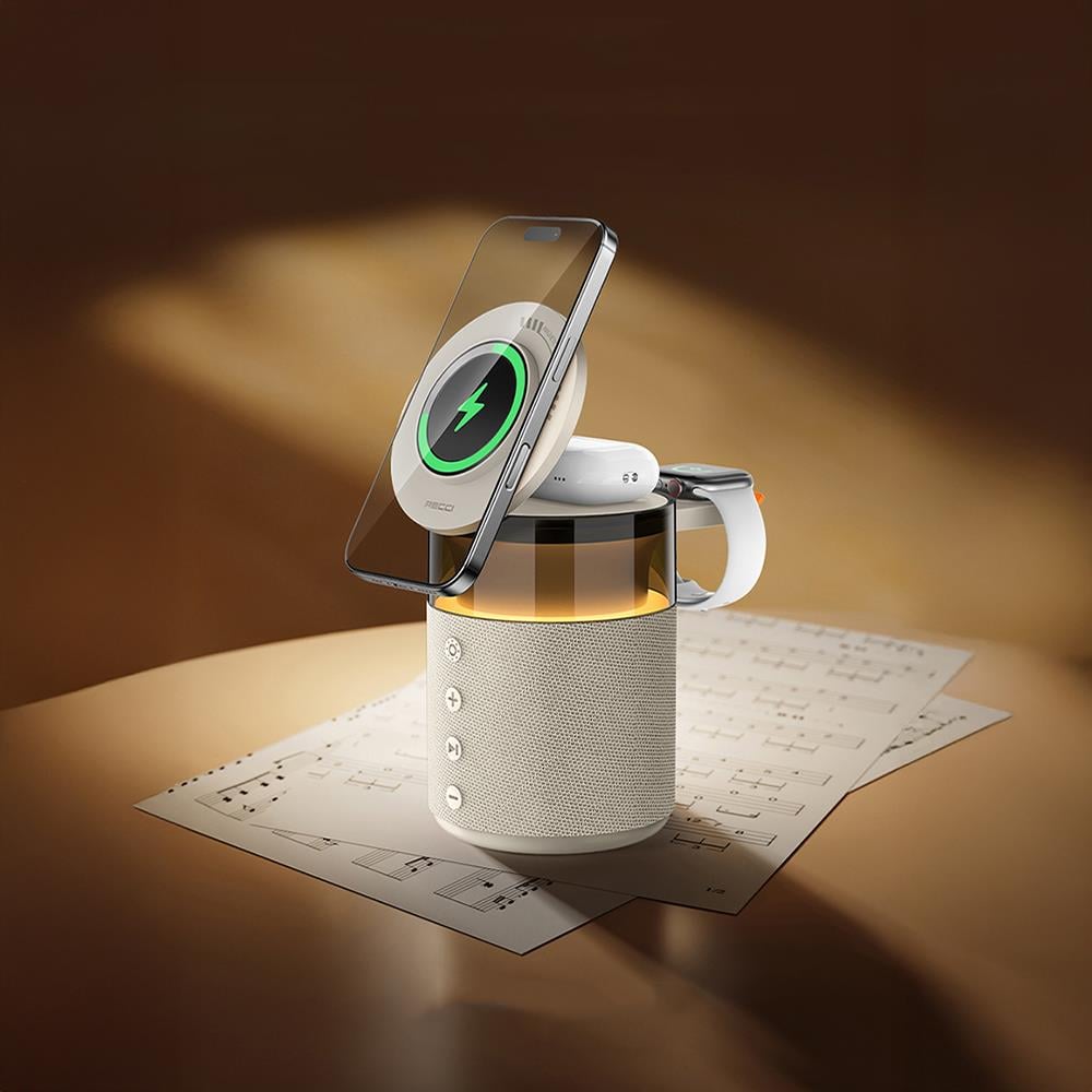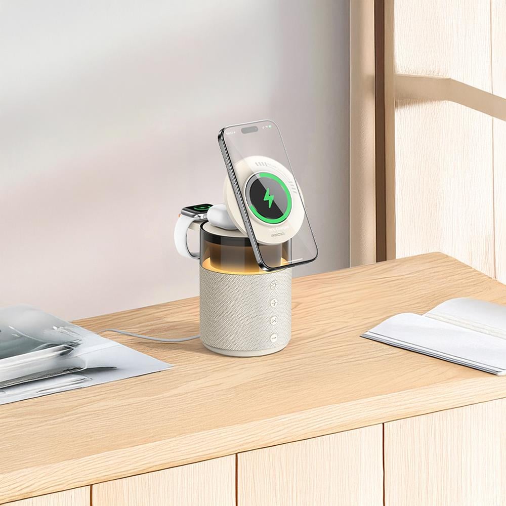 Recci RCW-51 Kablosuz Şarj Standı Ambiyans Işıklı Bluetooth Speaker Hoparlör Özellikli