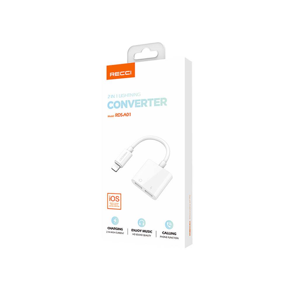 Recci RDS-A01 Lightning 2in1 Şarj ve Ses Adaptörü