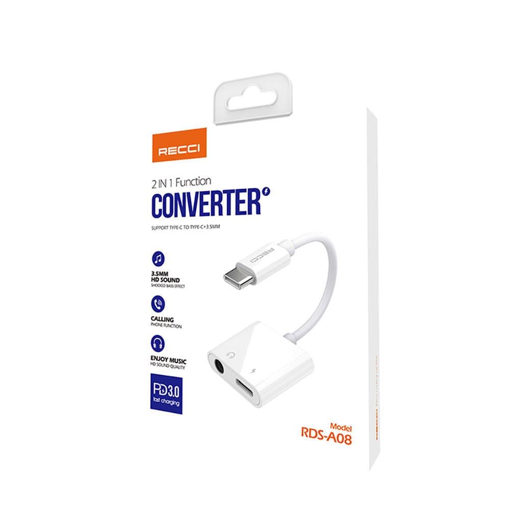 Recci RDS-A08 Type-C PD 3.0 2in1 Şarj ve Ses Adaptörü
