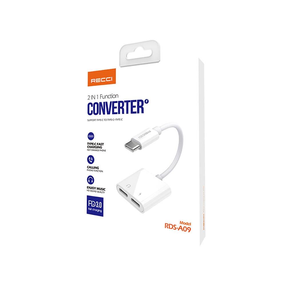 Recci RDS-A09 Type-C PD3.0 2in1 Şarj ve Ses Adaptörü