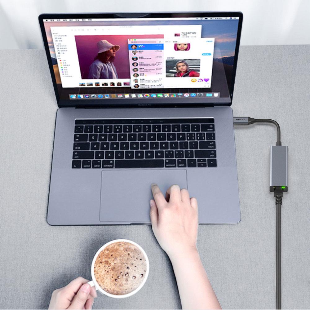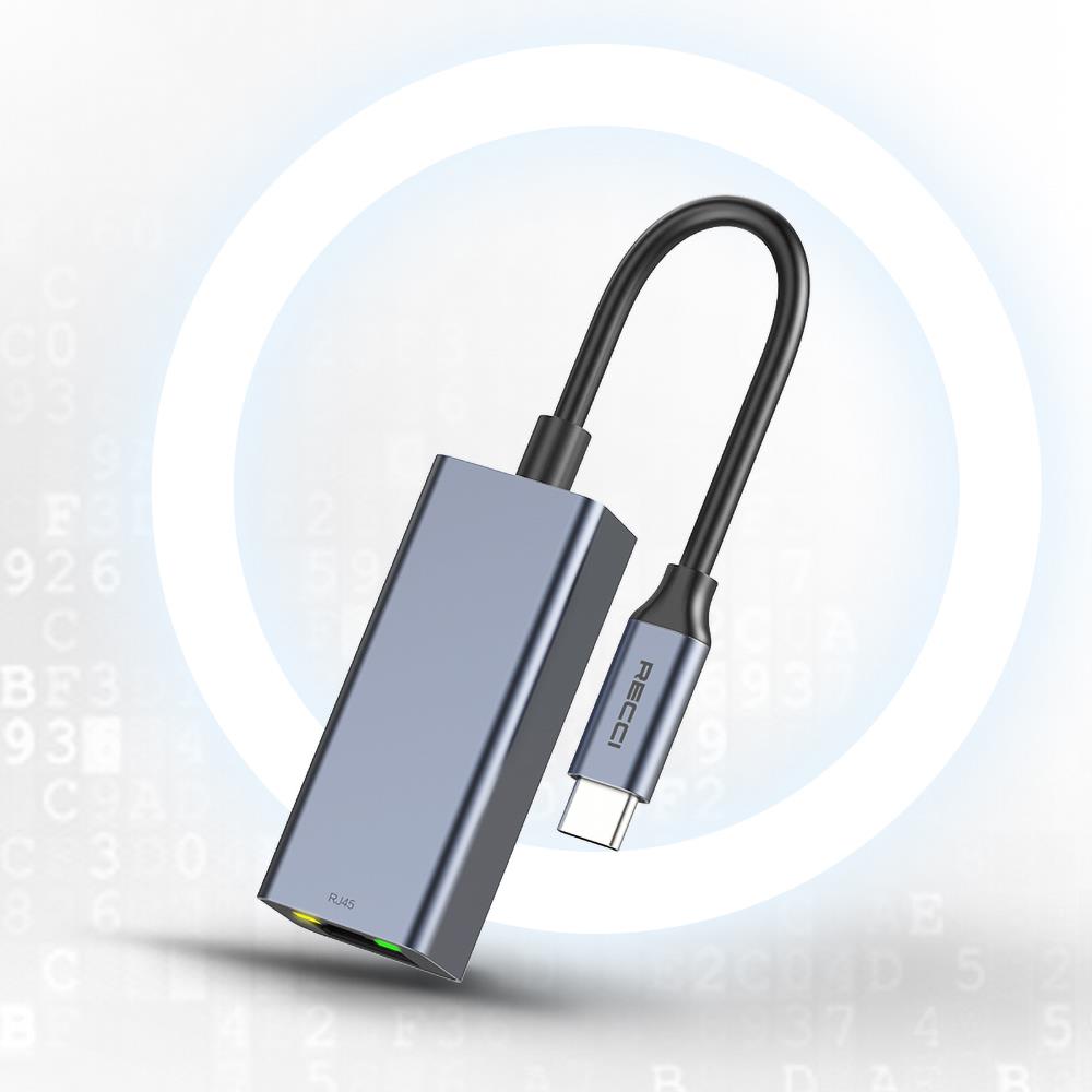 Recci RH10 RJ45 to Type-C Ethernet Dönüştürücü Kablo 100Mbps 80mm