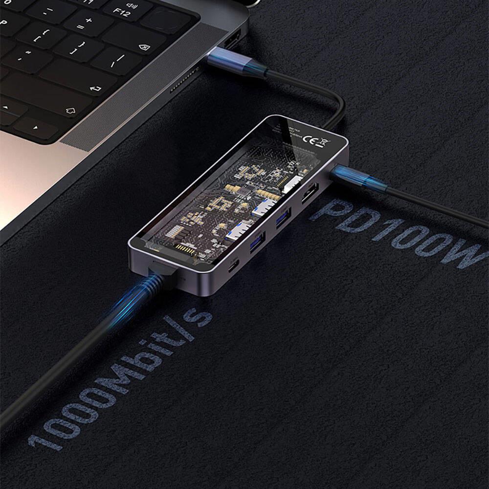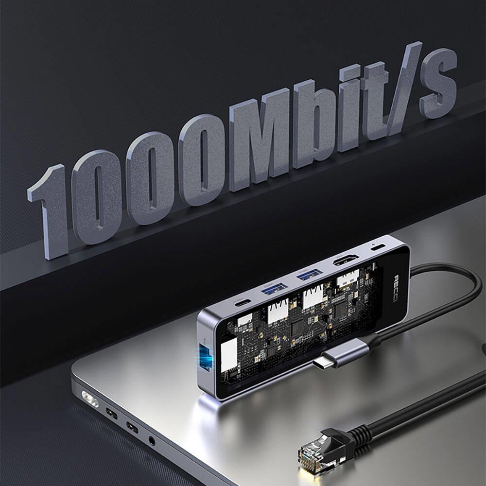 Hubın bir diğer öne çıkan özelliği, 1000Mbps hızındaki RJ45 internet girişiyle, kablolu internet bağlantınızı hızlı ve stabil bir şekilde kullanabilmenizdir. İster film izleyin, ister büyük dosyaları indirin, hızınızda kesinti yaşamazsınız.