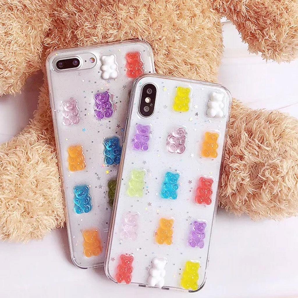 Şeffaf simli ve 3D kabartmalı ayıcık emojileri ile hem zarif hem de eğlenceli bir görünüme sahiptir.