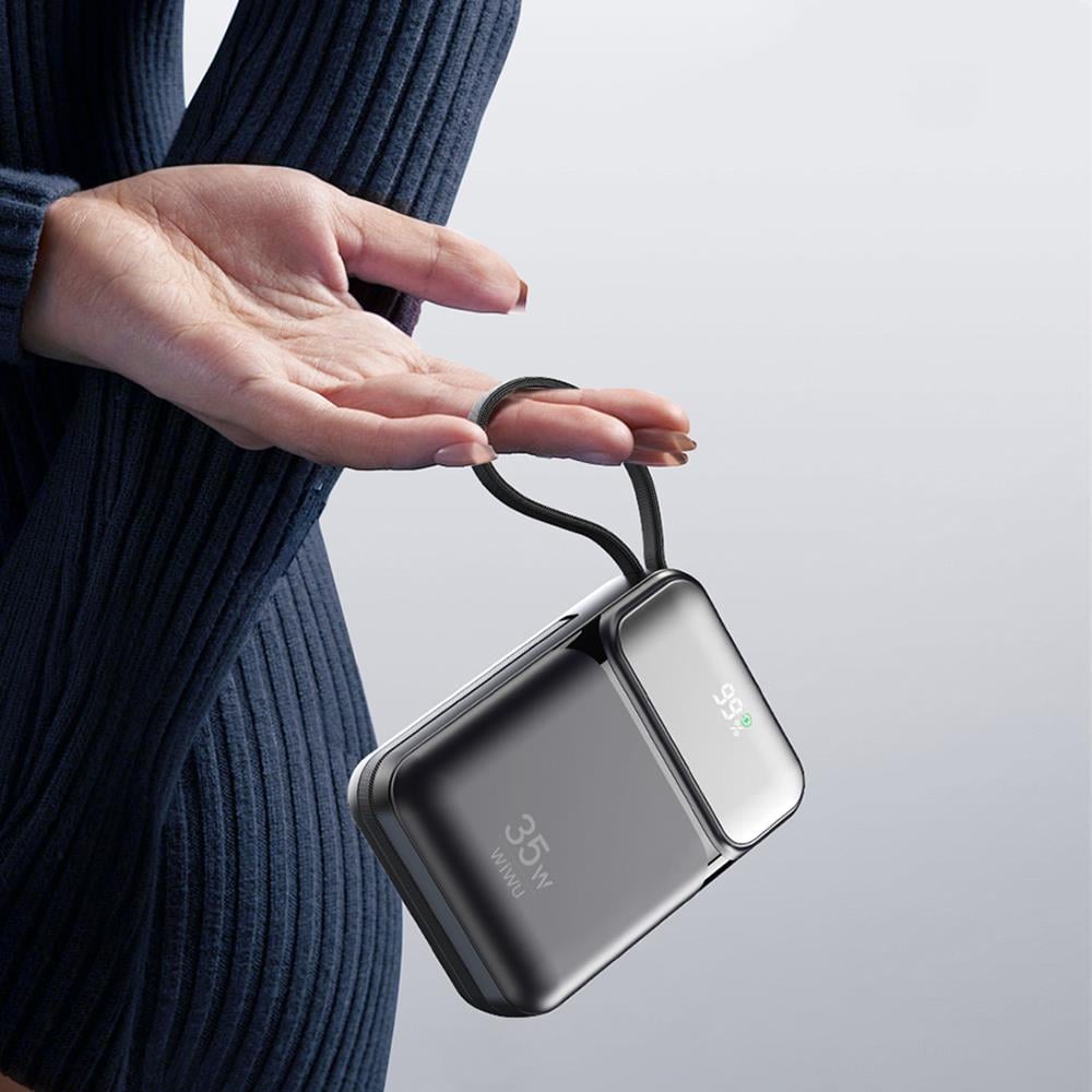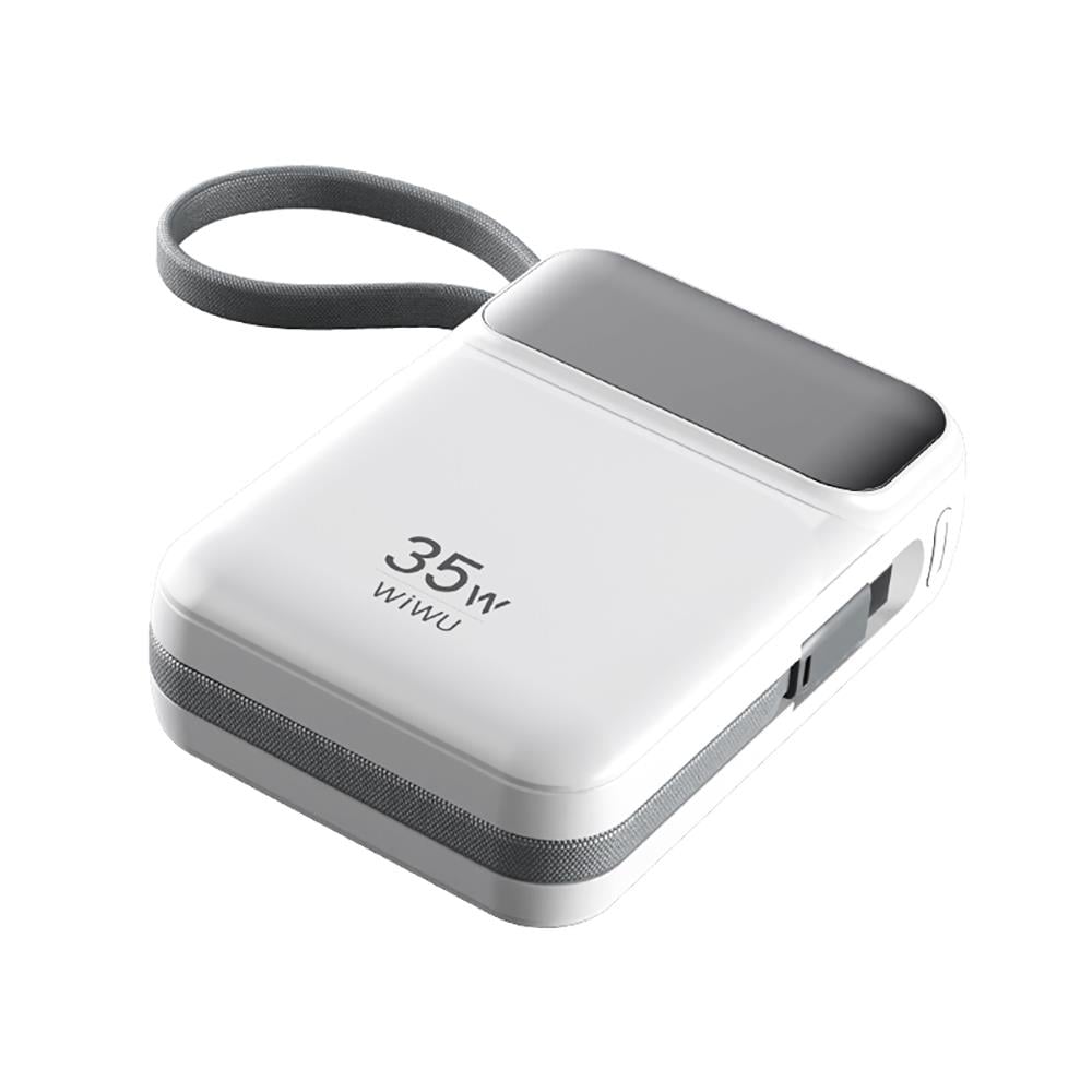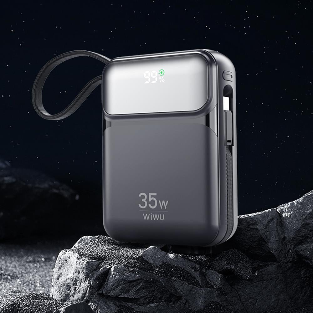 Wiwu Wi-P052 Galaxy Serisi Type-C Lightning Çıkışlı Taşınabilir Powerbank PD 35W 10000mAhMinimalist Tasarım, Maksimum Güç!Wiwu Galaxy Serisi powerbank, 35W PD hızlı şarj özelliğiyle akıllı cihazlarınızı sadece dakikalar içinde enerjiyle buluşturur. Kompakt boyutuna rağmen 10000mAh kapasiteli bu güçlü cihaz, dijital LED ekranı sayesinde kalan şarjı net biçimde gösterir. Estetik hatlara sahip zarif tasarımıyla ister iş toplantısında ister günlük kullanımda şıklığınızdan ödün vermeden yanınızda taşıyabilirsiniz.Çift Entegre Kablo ve Çoklu Cihaz Uyumu!Lightning ve Type-C uçlara sahip entegre kablolarıyla iOS ve Android cihazları ayrı ayrı kablo taşımaya gerek kalmadan şarj edebilirsiniz. Ayrıca USB-A ve Type-C çıkışları sayesinde dört farklı cihazı aynı anda besleyebilir. Seyahatte tabletinizi şarj ederken aynı anda akıllı saatinizi ve telefonunuzu da bağlayarak tüm elektronik ihtiyaçlarınızı tek bir merkezden karşılayabilirsiniz.Her Ortamda Taşınabilir Şıklık!El kayışı ve kompakt boyutu sayesinde Wi-P052 modelini çantanıza atmak veya bileğinize takmak son derece kolay. Üstelik sadece 3 saat içinde tamamen şarj olabilen bu powerbank, günlük kullanımda zaman kazandırır. Uçakla seyahat edenler için taşınabilirlik sınırlarını karşılayan 10000mAh kapasitesi sayesinde yurtdışı gezilerde bile güvenle kullanılabilir.Ürün ParametreleriKapasite: 10000mAhNominal Kapasite: 6000mAhType-C Giriş: 5V⎓3A, 9V⎓3A, 12V⎓2.92A, 15V⎓2.33A, 20V⎓1.75A (35W Max)Lightning Çıkış (entegre): 5V⎓2A, 9V⎓3A (27W Max)Type-C Çıkış (entegre): 5V⎓3A, 9V⎓3A, 12V⎓2.92A, 15V⎓2.33A, 20V⎓1.75A (35W Max)USB-A Çıkış: 5V⎓3A, 9V⎓2A, 12V⎓1.5A, 10V⎓2.25A (22.5W Max