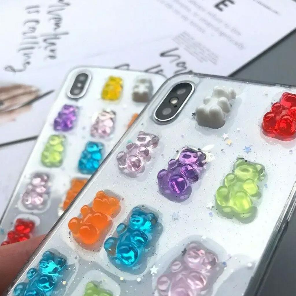 Şeffaf simli ve 3D kabartmalı ayıcık emojileri ile hem zarif hem de eğlenceli bir görünüme sahiptir.